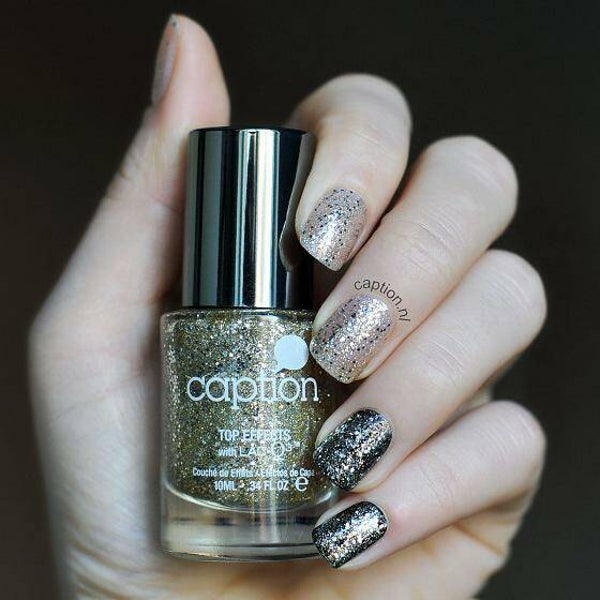 Geef een feestelijke touch aan je manicure met de Caption Topeffects! Breng de Topeffects aan over jouw favoriete Caption kleur of kies ervoor om deze direct na de Basecoat aan te brengen. Dankzij de Lacq3- technologie is Caption touch-dry binnen enkele seconden en heeft de look van een gel zonder het gebruik je ook de Caption Base- en Topcoat en volg je de stappen in de bijgeleverde bijsluiter.